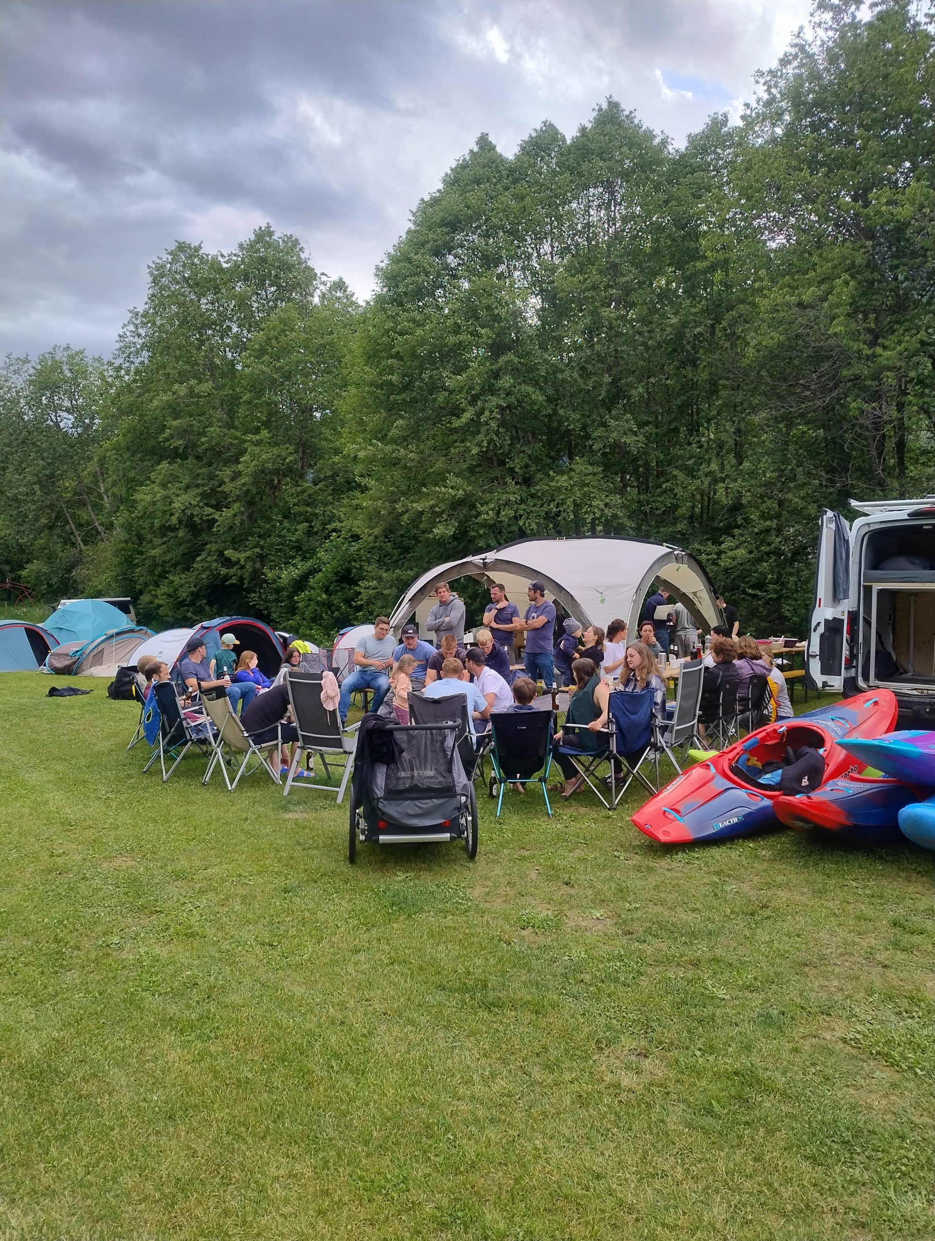 35 Brohler Kanuten verbrachten das verlängerte Christi-Himmelfahrts-Wochenende vom 29. Mai bis 1. Juni auf den Quellflüssen des Rheins in der Schweiz. In diesem Jahr schlugen die Kanutinnen und Kanuten ihr Lager auf dem idyllisch gelegenen Campingplatz in Trun im Vorderrheintal auf, umgeben von einer beeindruckenden Bergkulisse und kristallklaren Flüssen.